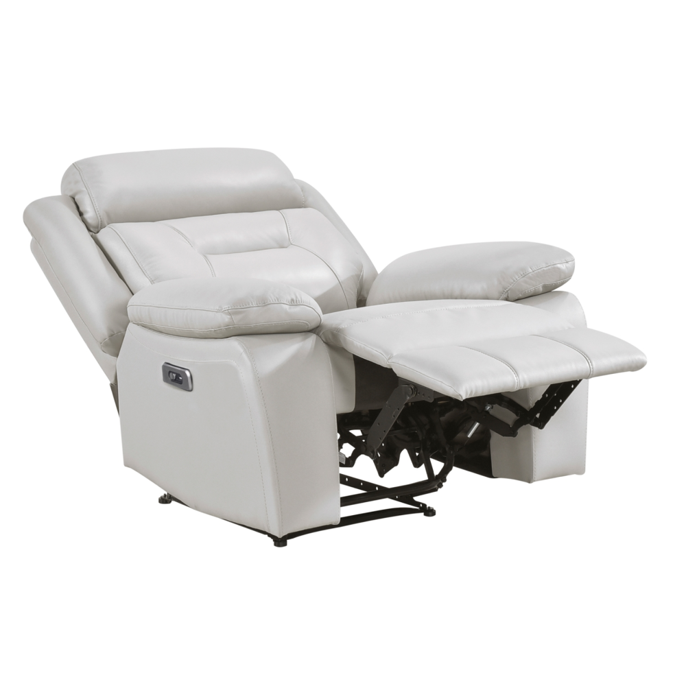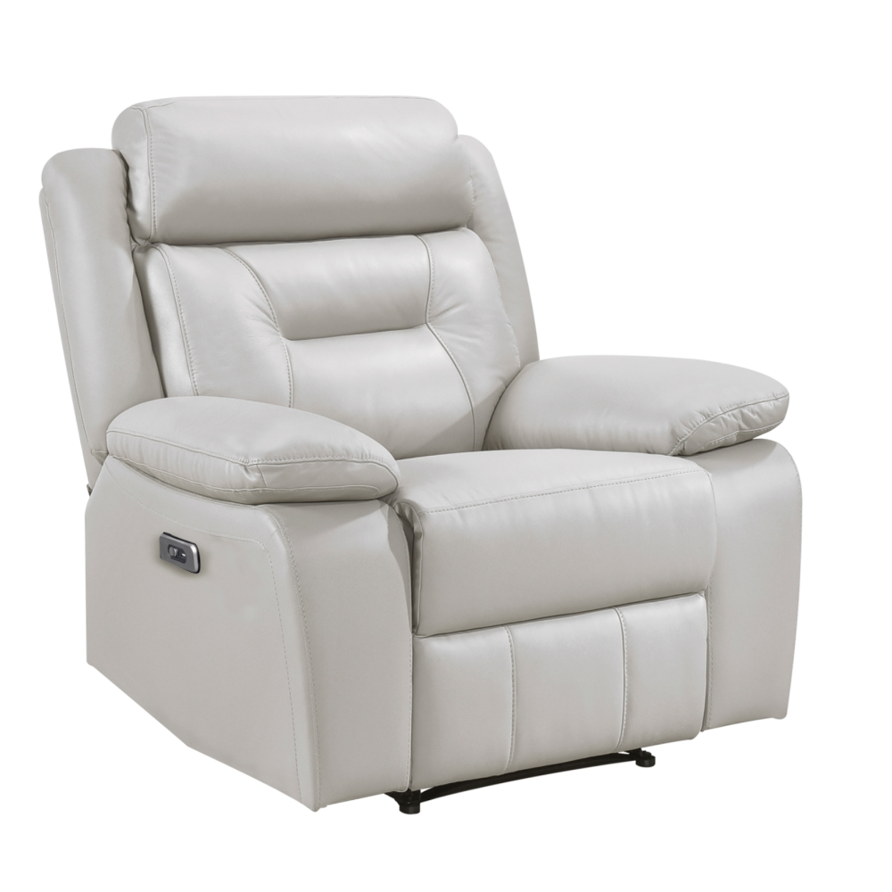 Indulge in premium comfort and effortless relaxation with this top grain leather match power recliner chair, designed to deliver luxurious style, smooth reclining, and ultimate support. Featuring electric power reclining functionality, this chair allows you to adjust your position at the touch of a button, ensuring personalized comfort for lounging, reading, or watching TV. Upholstered in sleek top grain leather match, it offers a high-end look with enhanced durability, while the plush cushioned seat, padded armrests, and high backrest provide exceptional ergonomic support. Whether placed in a living room, home theater, or reading nook, this modern power recliner combines sophisticated design with advanced functionality, making it a must-have for those who prioritize comfort and convenience.