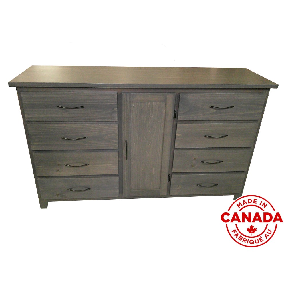 The Ventura 8 Drawer Door Dresser is an excellent quality solid wood dresser made locally in the lower mainland. Available in 20 different colour stains. Pictured in Steel Grey with Black Handles.